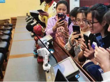 讲座内容精彩纷呈,员工全神贯注,听得津津有味,讲座结束,员工还围着优必选公司带来的悟空机器人进行互动,悟空机器人则进行太极拳运动等展示。