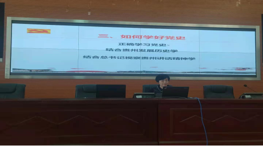 赵忠璇书记以“学党史、学总书记贵州讲话精神,开辟百姓富、生态美的多彩贵州新未来”为主讲题目。主讲内容涵盖了中国共产党百年历史、学习党史的深刻涵义、如何学好党史三部分。在正式开讲之前,赵书记介绍了学党史、学总书记贵州讲话精神的背景和意义。