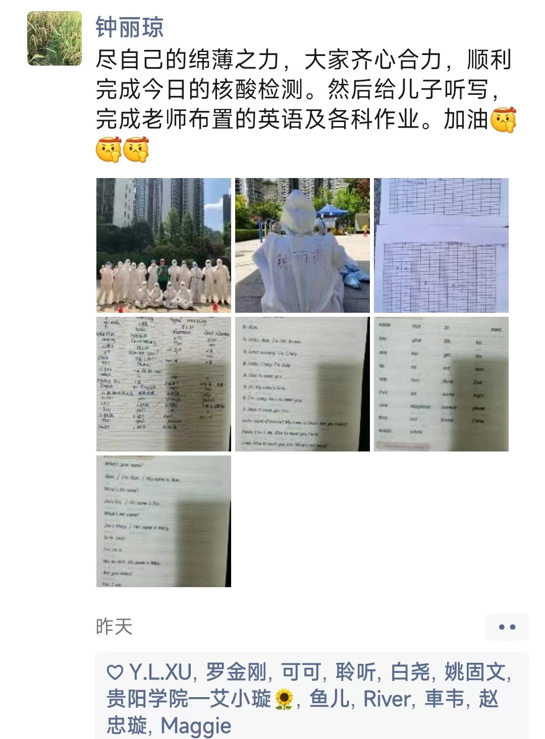 作为教师党员,钟丽琼老师牺牲个人休息时间,在居家办公之余,踊跃参与社区核酸采样、应急保障等防疫服务工作,不怕辛苦、迎难而上,以当代年轻人的责任和担当社区疫情防控注入强大的力量。